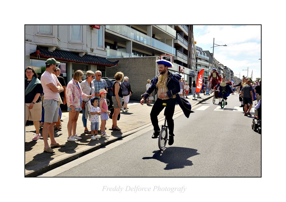 Zoals elk jaar zijn er de Duinegatfeesten in Bredene, er is altijd veel animatie te zien Hier zijn er enkele verklede artiesten die op hun éénwielers rondreden, en zeer veel bijval kenden vanwege het talrijke publiek.