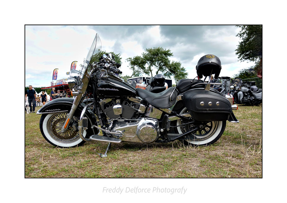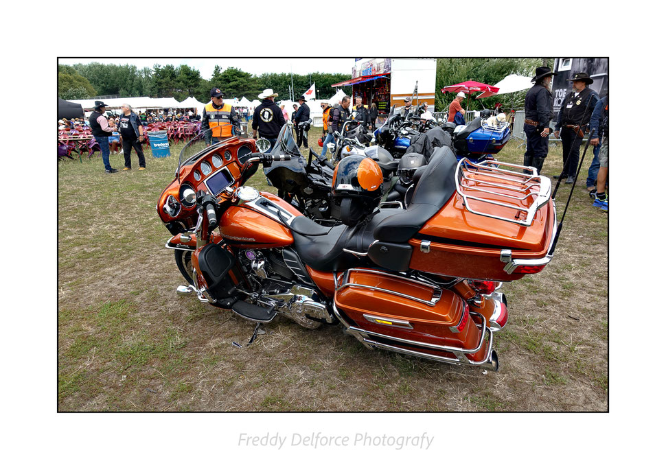 Op de laatste dag van het Western Festival, was er een show van een vijftigtal Harley Davidson motoren.