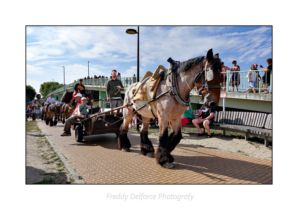 Er was ook het vliegend tapijt waar de kinderen opzaten en die over het strand wordt getrokken door een duo van twee Brabantse paarden. Dit tot jolijt van de kinderen.