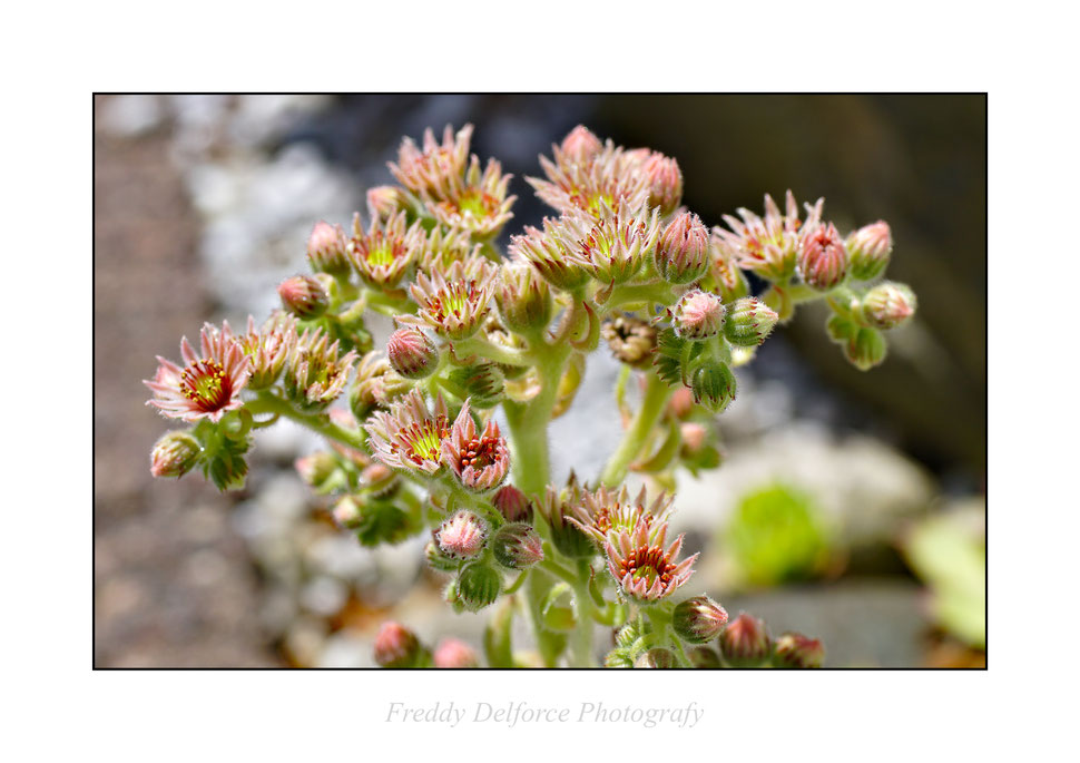 Ieder jaar staan mijn vetplanten in bloei, maar deze keer stond er een vetplant met een kolom met verscheidene bloemen in bloei. Maar ik heb 30 jaar meegenomen uit het Zuiden van Frankrijk, en nu hebben ze zich verspreid in mijn tuin. En het fijne is dat dit de éérste keer in jaren dat ik nog macrofoto's heb genomen.